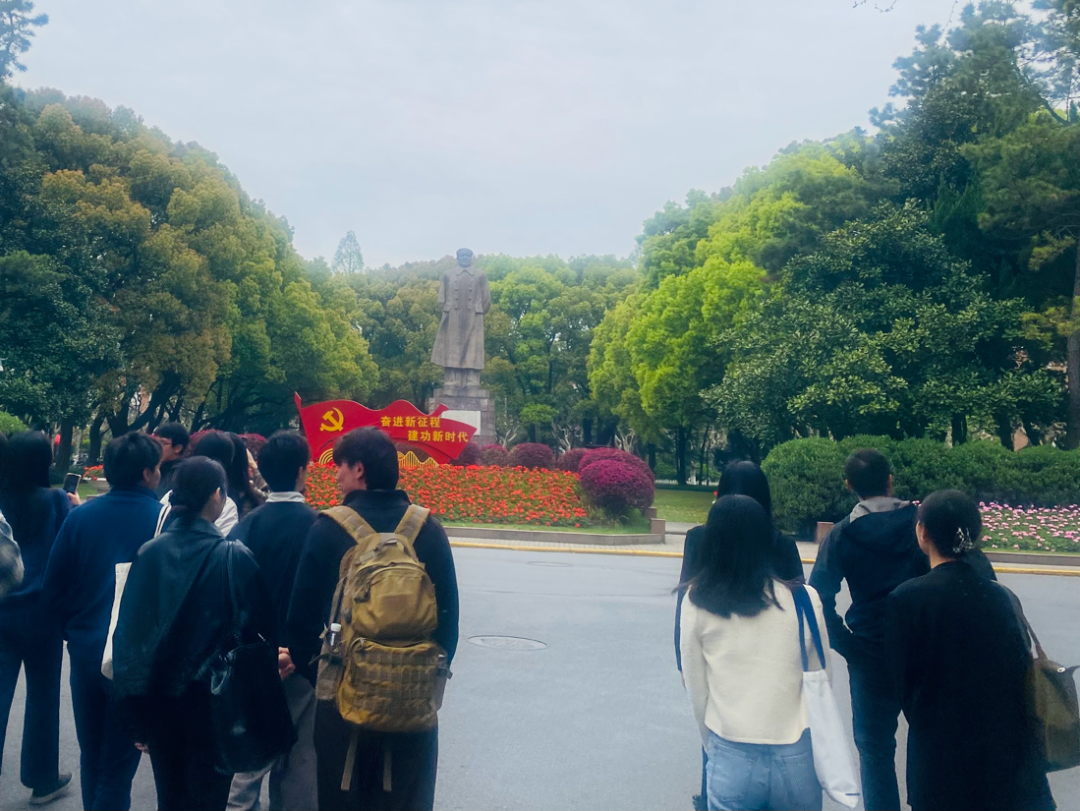 来访师生在亚洲色图 学生代表的带领下参观校园。阳春四月的上海生机勃勃,粉白樱花团簇在枝头,来访师生漫步于秀丽的南国校园,折服于和煦的春色的同时,更被浓厚的治学氛围与人文底蕴所吸引。