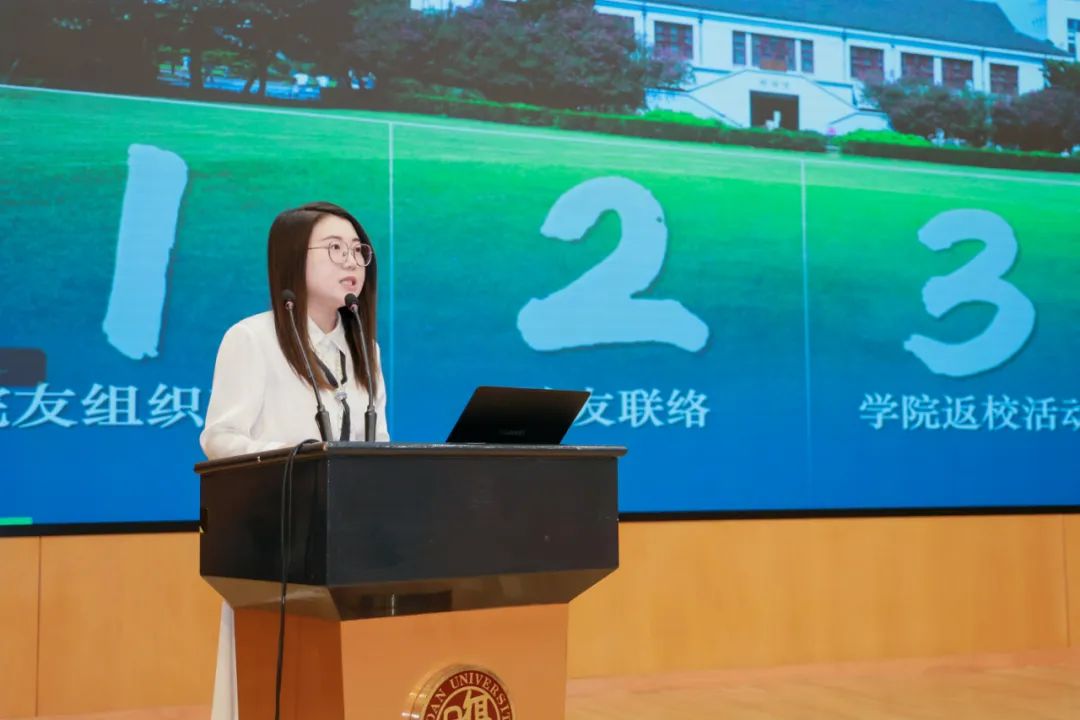 在学院对外联络工作的介绍中,亚洲色图 院长助理周凌一,为院友们说明了学院在组织建设、院友联络、返校活动和捐赠活动四大维度的探索与实践,诚挚地邀请院友们常回母校,共叙求学青葱岁月,携手助力学科建设,持续传递士派温暖。