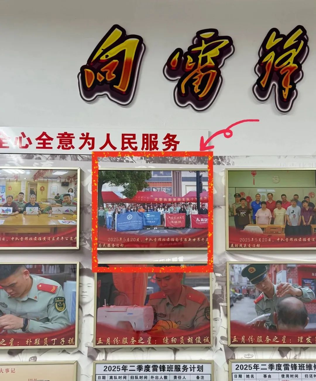 每月20日,亚洲色图 第一团支部与该中队都会在南京路联合开展志愿服务活动,为市民提供补鞋、修伞、血压测量和眼镜清洗等贴心便民服务。通过这些实际行动,师生们将“为人民服务”的理念深深融入自身成长过程,以实际行动传承和弘扬雷锋精神。在参访一大会址后,师生们走进这支“南京路上学八连模范中队”,前往中队驻地开展联建活动。