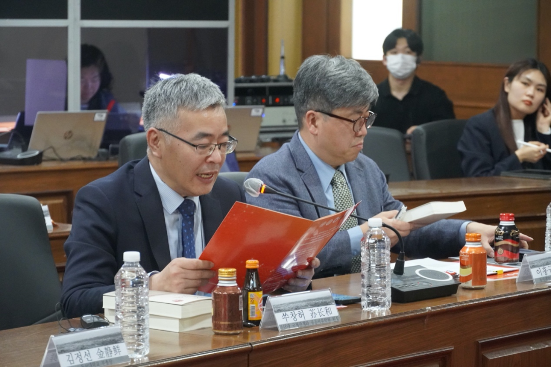 下午,新书发布会正式开始。致辞环节由韩国东西大学中国研究中心所长李弘揆教授主持。