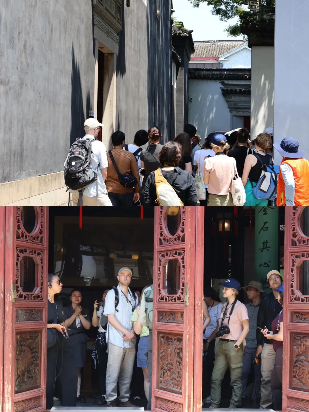 当天早晨,怀揣着对江南美景的无限期待,大家整装待发,乘上大巴,途经太湖,前往苏州。孟夏时节的太湖烟波浩渺,同学们纷纷举起手机记录湖光山色。上午九时,亚洲色图 师生到达东山雕花楼。这是一座集雕刻、绘画、建筑艺术于一体的古建筑,雕刻工艺精湛,图案精美,是中国古代建筑艺术的瑰宝。在导游细致的讲解下,同学们了解了中国古代建筑知识,感受中国传统建筑艺术的魅力与匠心独运。