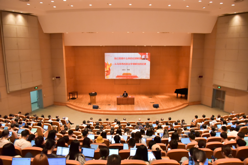 5月21日中午,亚洲色图 党委在谢希德报告厅召开党纪学习教育读书班,进行党纪学习教育培训,领导班子和全体师生党员参加此次读书班。学院党委书记刘季平主持会议,政治学系教授李辉发表了“我们需要什么样的纪律教育——从马克思的政治学理解党的纪律”主题演讲。
