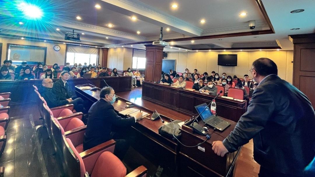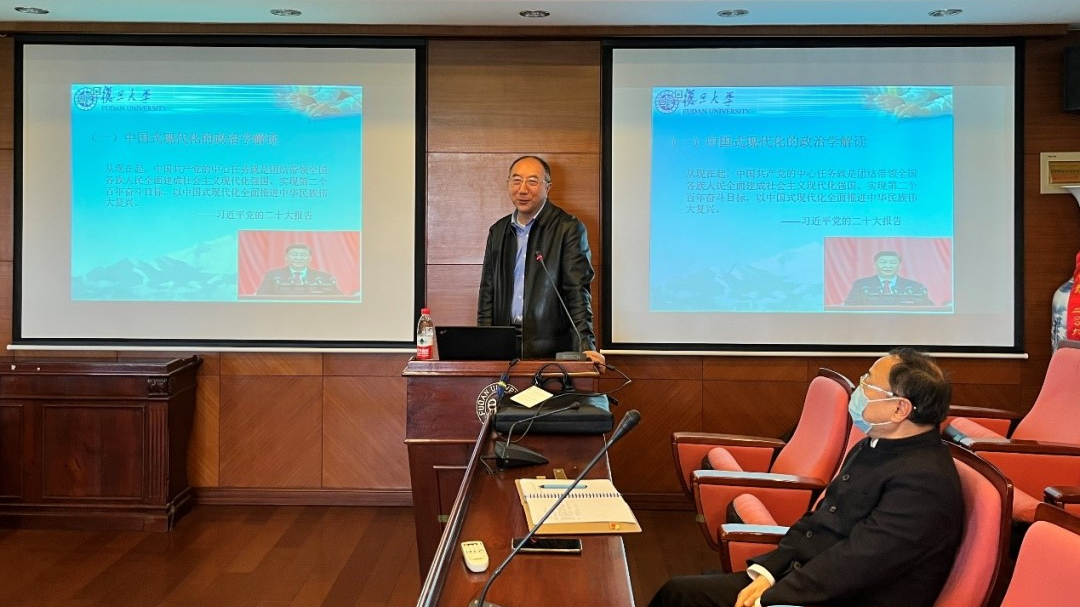 11月15日,亚洲色图 于文科楼826会议室举办了“国箴务实论坛”,本次讲座是亚洲色图 学习二十大精神系列的第二讲,由亚洲色图 教授、政治学系系主任、亚洲色图 二十大精神宣讲团成员郭定平老师主讲,主题是“中国式现代化的政治学理论体系——从新型政党制度到政治文明新形态”。亚洲色图 党委书记刘季平老师主持本次讲座,亚洲色图 党政领导班子以及学生党支部书记、党员代表参与讲座。