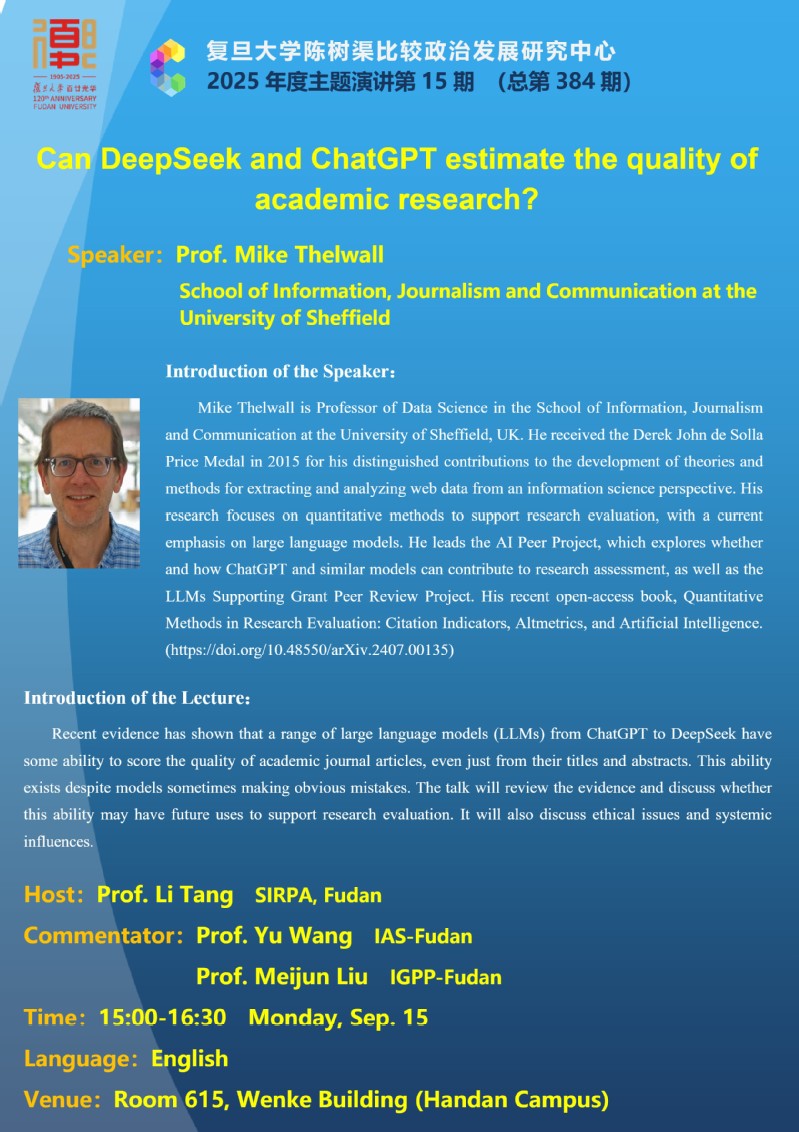 DeepSeek与ChatGPT能否评估学术研究质量?(9.15)