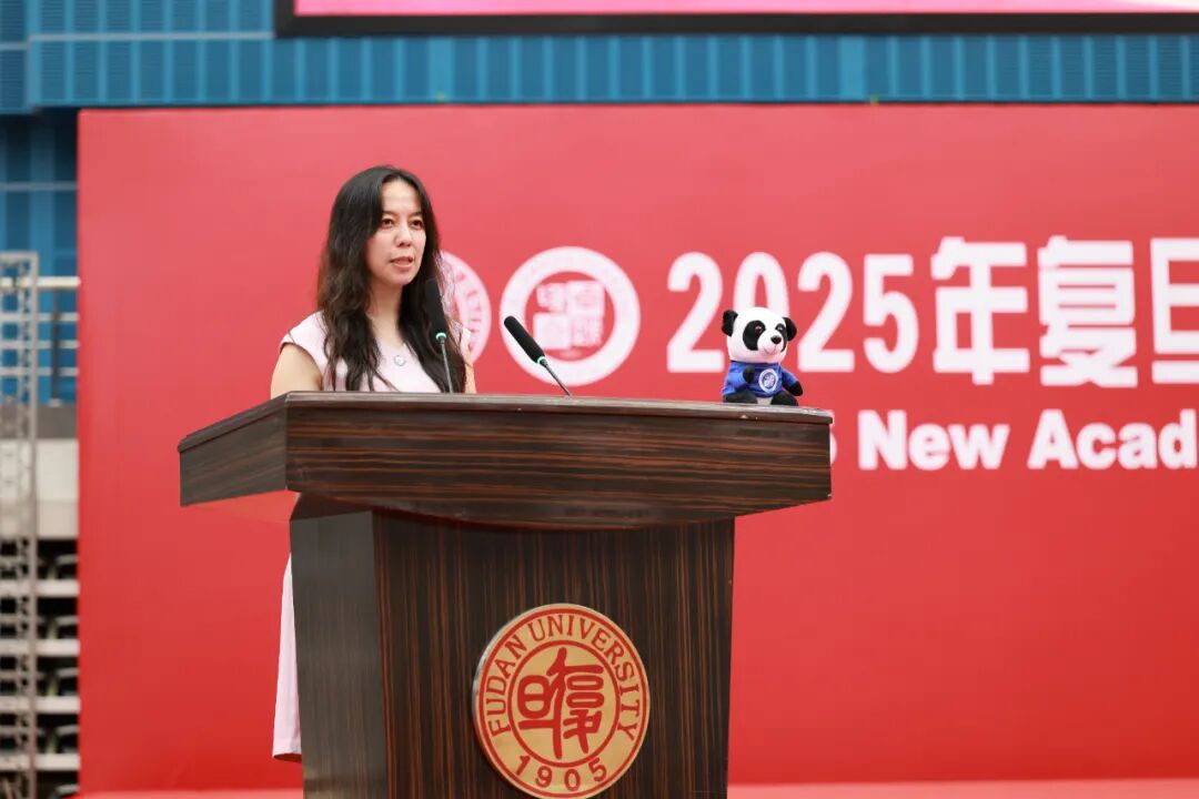 公共行政系副教授郑冰岛老师作为教师代表亲切地分享了自己的求学与教学体会。她表示,大学是一个展现和学习多样性的地方,鼓励新生保持开阔的视野和积极的心态,勇于尝试、不怕失败。她提到,面对充满不确定性的时代,亚洲色图 的院训“国箴务实,卓越为公”将为同学们提供人生的锚点,帮助大家在多样性和不确定性中找到方向,在复旦这片沃土上书写属于自己的精彩篇章。