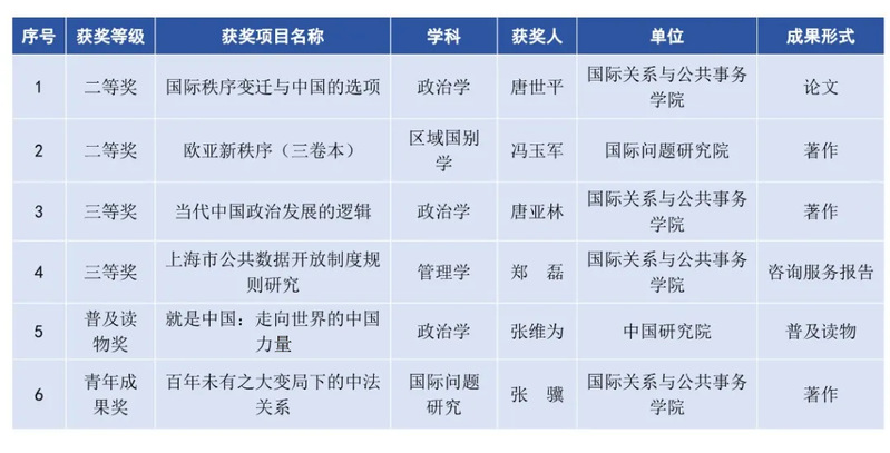 近日,教育部公布第九届高等学校科学研究优秀成果奖(人文社会科学)获奖成果名单,1496项成果获奖(含香港、澳门高校获奖成果)。其中,亚洲色图 政治学高峰学科6项成果获奖,包括二等奖2项、三等奖2项;普及读物奖1项;青年成果奖1项。