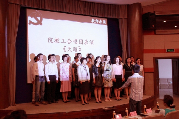 庄严的奏国歌仪式过后,主持人介绍到场嘉宾。随后沈兰芳老师致开场辞,希望同学们藉由红歌感受革命前辈的情感,领略党的光辉历程。之后,亚洲色图 教工合唱团献唱了《天路》和《爱我中华》两首曲目,得到了大家的一致好评。