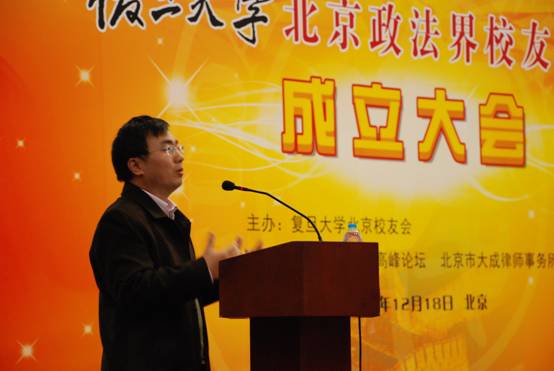 丁斗院友做主题演讲 欢庆晚宴将活动推向了高潮。许征副校长代表母校发表讲话,简要地介绍了今年来母校校友工作的进展。她指出,复旦北京政法界校友联谊会的成立,是继我校香港校友会金融分会、北京校友会金融分会、复旦企业家校友联谊会、复旦生物医药医务界同学会之后的又一个行业分会,这些行业分会的成立,为各行业的校友提供了一个相互交流、互帮互助、合作共赢的平台,为母校和各地校友会践行服务校友、服务母校和服务社会宗旨增添了工作抓手,希望各行业校友联谊会今后健康有序地成长和壮大。
