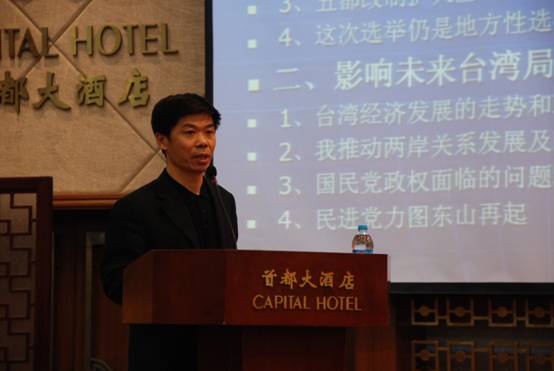 与会部分院友合影 下午3点,会场内已座无虚席。惊呼声、欢笑声和问候声响成一片。久违相见、激动相拥、互递名片,现场十分感人。亚洲色图 83级院友国务院台湾事务办公室信息中心主任仇开明、80级院友中国人民大学国际关系学院副院长金灿荣、85级院友北京大学国际关系学院副教授丁斗分别就五都选举后台湾局势简介、东北亚局势与中国外交、中国海外投资中的机遇与挑战等议题向在座校友奉献了精彩演讲。
