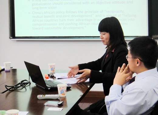 肖佳灵副教授则系统而详细的介绍了中非关系发展的历史脉络及其现状,借助对历史资料以及现实数据的全面把握,肖老师深刻而准确的提炼了中国对非政策的特殊性,并把握到了现实中面临的重大挑战。张家栋副教授深刻而直率的剖析了美国反恐战略中蕴含的内在矛盾,并指出未来除非做出相应的挑战,解决这些内在的矛盾,否则简单的增兵或者调整都无法解决这些内在矛盾。沈逸博士则介绍了以网络安全为代表的非传统因素可能对中美关系产生的各种影响。
