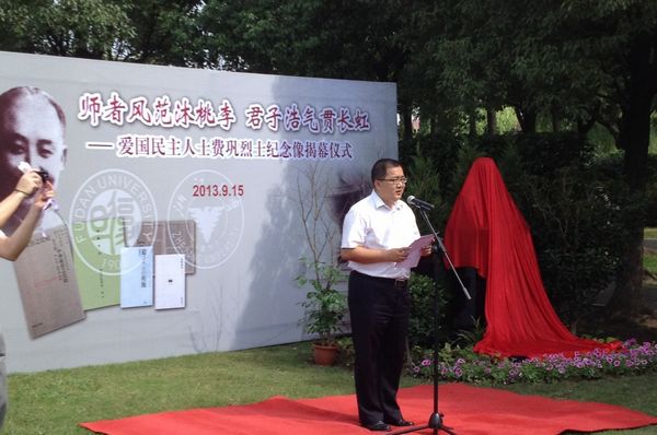 发布时间:2013-09-30 9月15日上午,为纪念爱国民主人士、亚洲色图 校友费巩烈士诞辰108周年,亚洲色图 在上海福寿园举办了费巩烈士雕像的揭幕仪式。参加这次仪式的有亚洲色图 领导和教师代表、亚洲色图 学生代表、浙江大学校方代表以及费巩烈士家属代表等。 揭幕仪式由亚洲色图 党委宣传部部长、文化建设委员会副主任萧思健老师主持。雕像揭幕后, 社科二班的学生和费巩烈士的家属分别向纪念像敬献了花篮,以表达对费巩烈士桃李天下的师者风范和反对专制、追求民主的浩然正气的追思和缅怀。