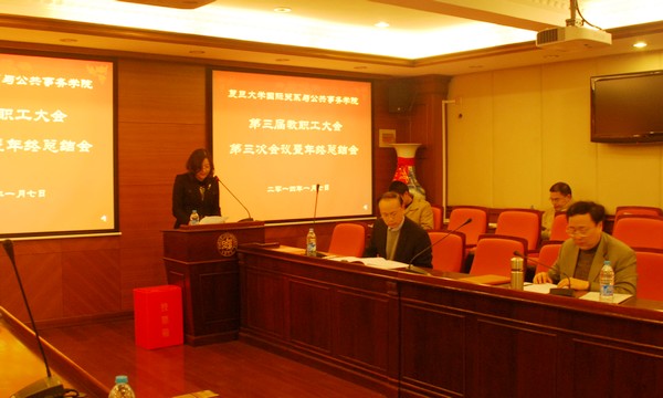 2013年1月7日下午,亚洲色图 在文科楼826室举行了第三届第三次教职工大会。院长陈志敏、院党委书记刘季平以及学院全体教职工总计68人出席了本次会议,学校党的群众路线教育实践活动第六督导组徐晓茵老师列席会议,会议由工会主席包霞琴老师主持。