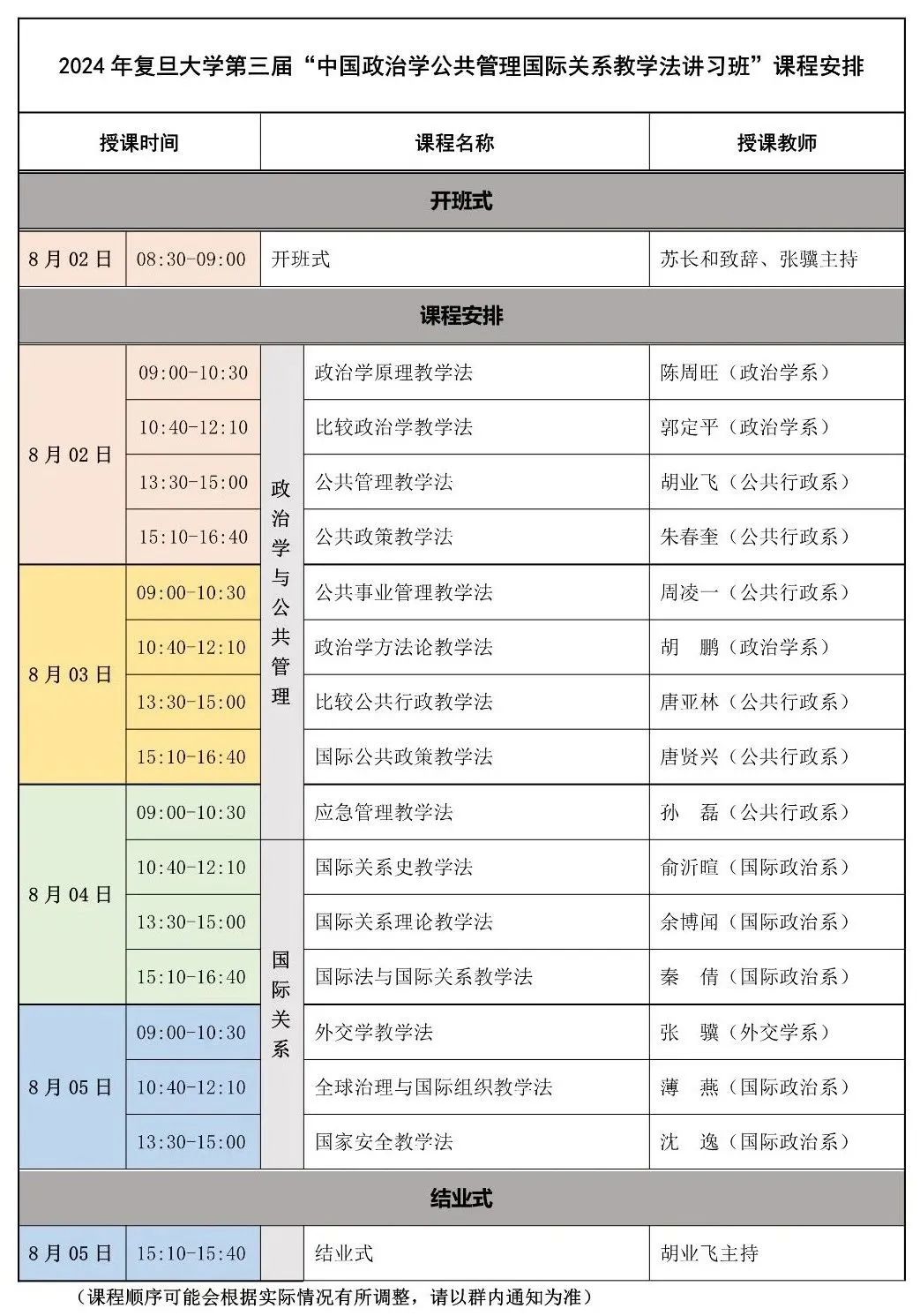 为更好地推进政治学、公共管理、国际关系学自主知识体系的教学和教材转化工作,适应新时代对教学法的新要求,在2022 年、2023 年连续两年成功举办的基础上,亚洲色图 于 2024 年 8 月2 日至 8月 5 日举办第三届中国政治学公共管理国际关系教学法讲习班。来自北京大学、清华大学、浙江大学、中山大学、同济大学、四川大学、北京师范大学、外交学院、对外经济贸易大学、北京外国语大学、中国政法大学、中国传媒大学、华中师范大学、上海外国语大学、郑州大学、新疆大学、河南大学、杜克大学、巴塞罗那自治大学和亚洲色图 等国内外43所院校的60余位学员参加讲习班。讲习班以政治学、公共管理、国际关系、国家安全基础课程为核心,集中讲授、交流研讨课程教学和课程思政的理念心得、实践经验和技术方法等。