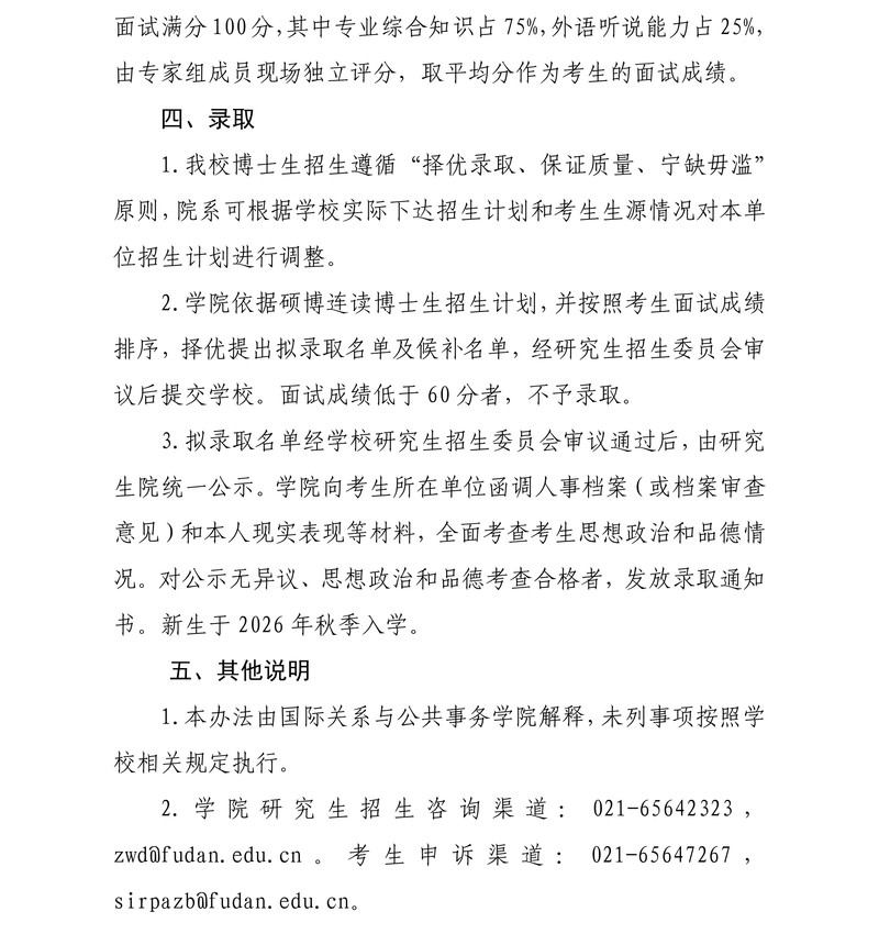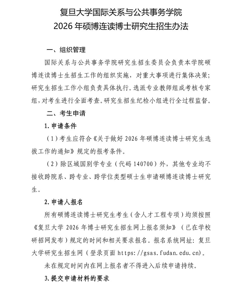 复旦亚洲色图 2026年硕博连读博士研究生招生办法