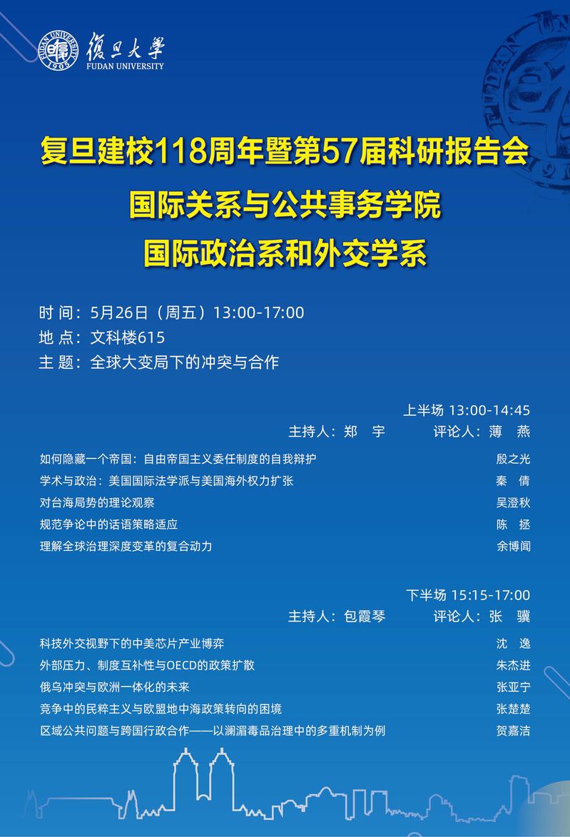 复旦建校118周年暨第57届科研报告会 | 全球大变局下的冲突与合作(5.26)