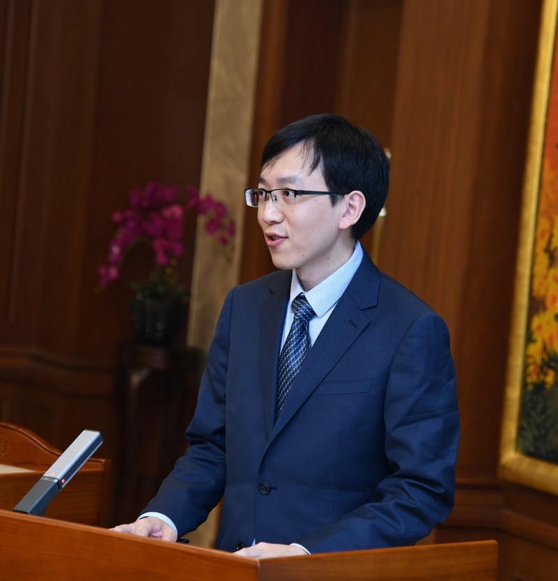新加坡驻华大使馆教育处一等秘书陈维彪代表新方学员发言。陈维彪先生表示,中新两国有着深情厚谊,两国领导人一直保持着紧密联系。本期研修班的新加坡学员们来自政府部门的各行各业,尚处于相互熟悉的阶段,友谊的种子亟待生根发芽,大家都非常期待能在人杰地灵的上海,通过各位授课专家的真知灼见实现思维碰撞,与上海市及其他省市的中国同仁结交友谊、互通有无。