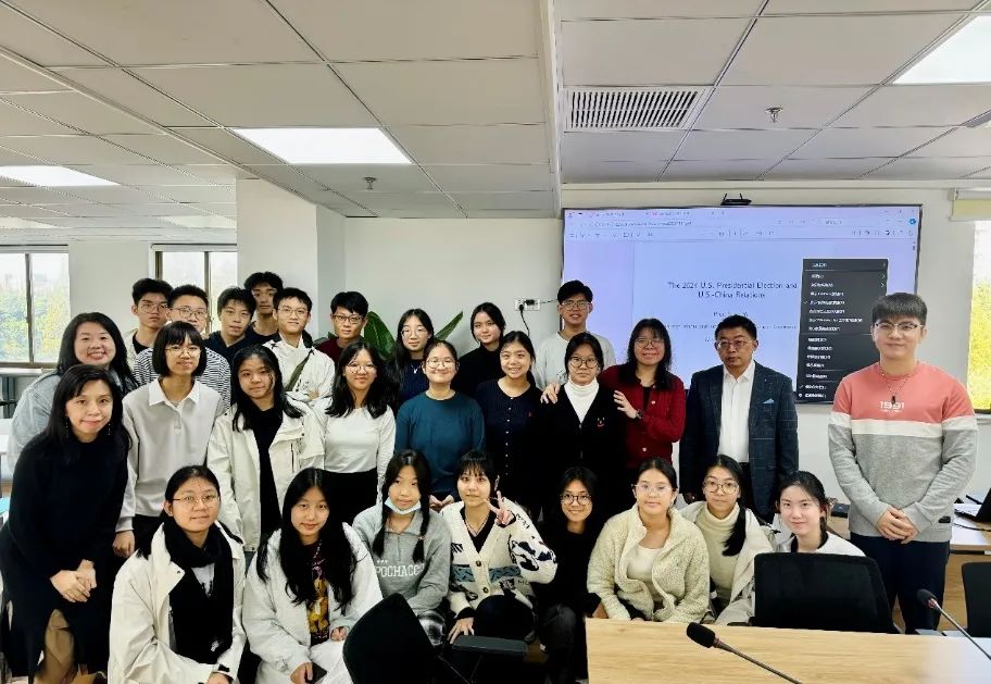 网络空间国际治理研究基地主任、中美关系专家沈逸教授以“2024年美国大选与中美关系”为题,对大选后中美关系的走向以及具体领域内的发展前景为新加坡中学生进行了深入浅出的专业分析。在提问环节,新方同学们关于今年美国大选两党政策的得失成败展开踊跃的提问,沈老师则从哈里斯边境政策中现实考量的缺乏、民主党政治精英的进步主义与美国底层民众保守主义之间的冲突等角度进行了详细的解答,现场反响热烈。