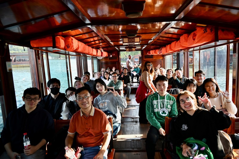 下午,亚洲色图 师生在杭州西湖乘坐游船感受秀丽清雅的湖光山色、璀璨丰蕴的文物古迹和文化艺术。西湖不但独擅山水秀丽之美、林壑幽深之胜,而且还有丰富的文物古迹、优美动人的神话传说,自然、人文、历史、艺术,巧妙地融合在一起,是我国著名的历史文化游览胜地。同学们认真聆听关于三潭映月、苏堤、断桥等西湖景点的历史资料,纷纷拍照记录下这难忘的湖光山色。