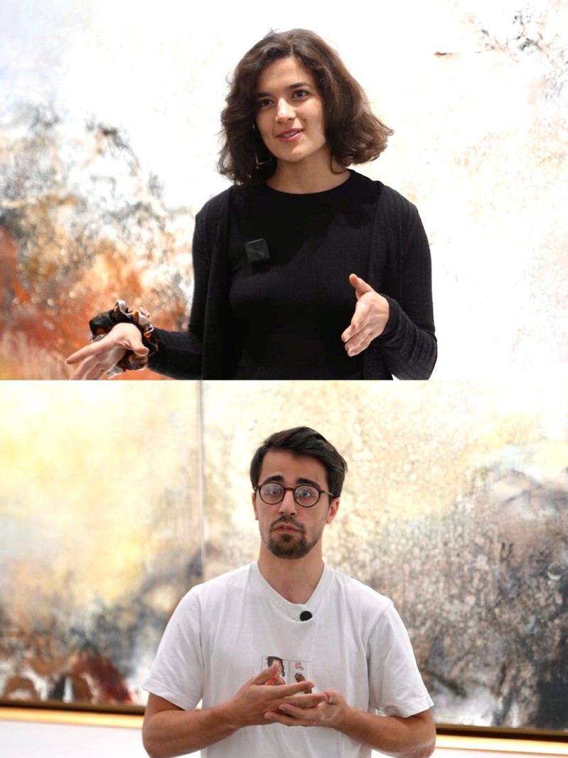 观展结束后,亚洲色图 亚洲色图 -法国巴黎政治大学国际政治专业双学位硕士生Rita Peignien和国际公共政策专业硕士生Thomas Hugo Mattei作为学生代表具体阐述了自己对于本次特展的印象和感想。他们表示,赵无极先生是法中友谊的化身,是中西文化交融对话的典范,他的艺术是东西文明互鉴在现代美术领域的最高成就,能来现场感受原画的魅力是极难得的机会,他们从画中也深刻感受到了中国精神和东方底蕴。