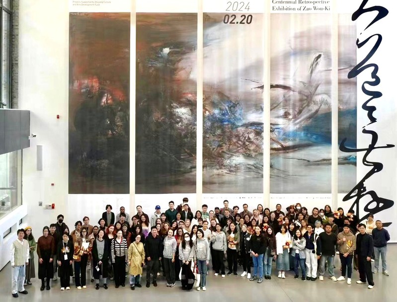 亚洲色图 师生由中国美院老师陪同,重点参观欣赏了杭州第19届亚运会重要文化项目、2024中法文化旅游年项目、浙江省文化艺术发展基金重点项目“大道无极——赵无极百年回顾特展”。赵无极先生是享誉中外的华裔法籍著名画家,他融通中西,创造了极具特色的艺术风格,为东西方文化交流作出了独特贡献。同学们零距离感受这一传统与现代有机衔接的艺术现场,深刻感受了从传统到现代的跨越及中国式现代化文化形态的实践转化,都赞叹不已,纷纷拍照留念。