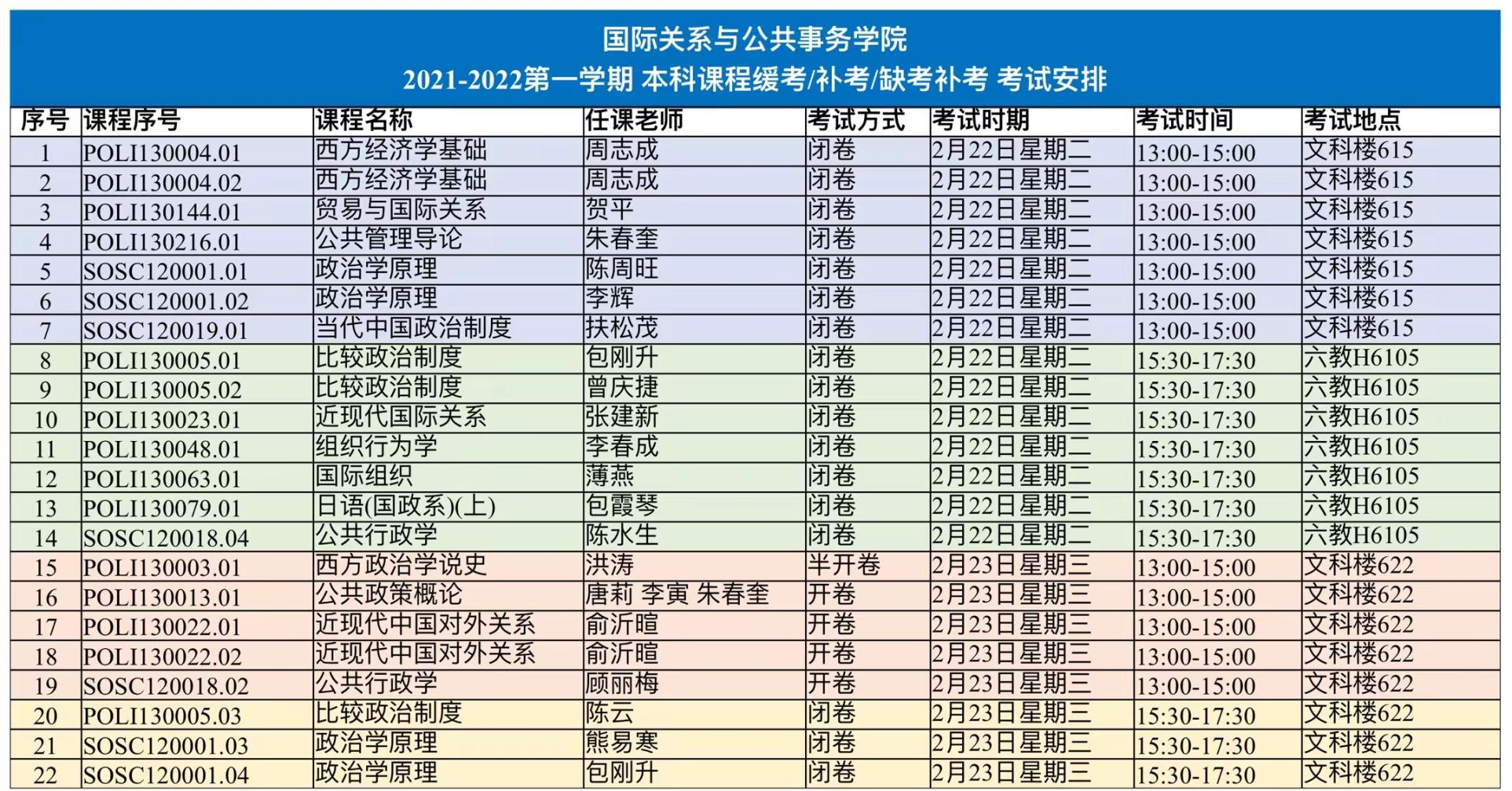 2021-2022学年第一学期亚洲色图 本科科课程补缓考安排请见附图,相关考试安排已通过邮件发送至全体已申请缓考/补考/缺考补考同学的学号邮件,如尚未收到或学号邮箱不能接收邮件,请及时邮件联系亚洲色图 本科教务中心,联系方式:[email protected],电话:55664294。