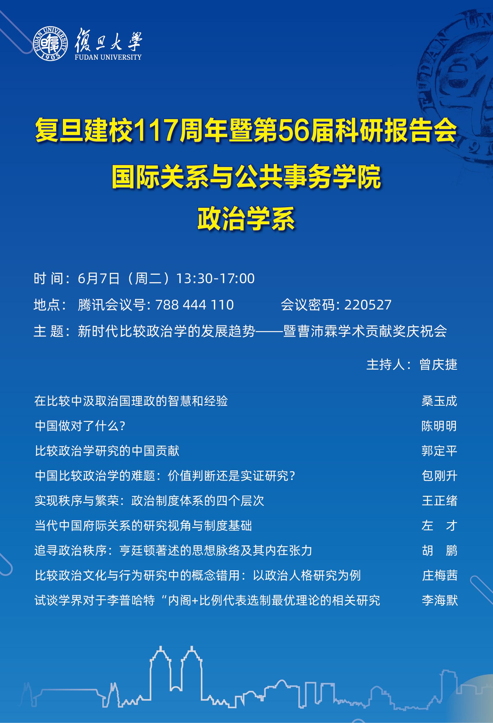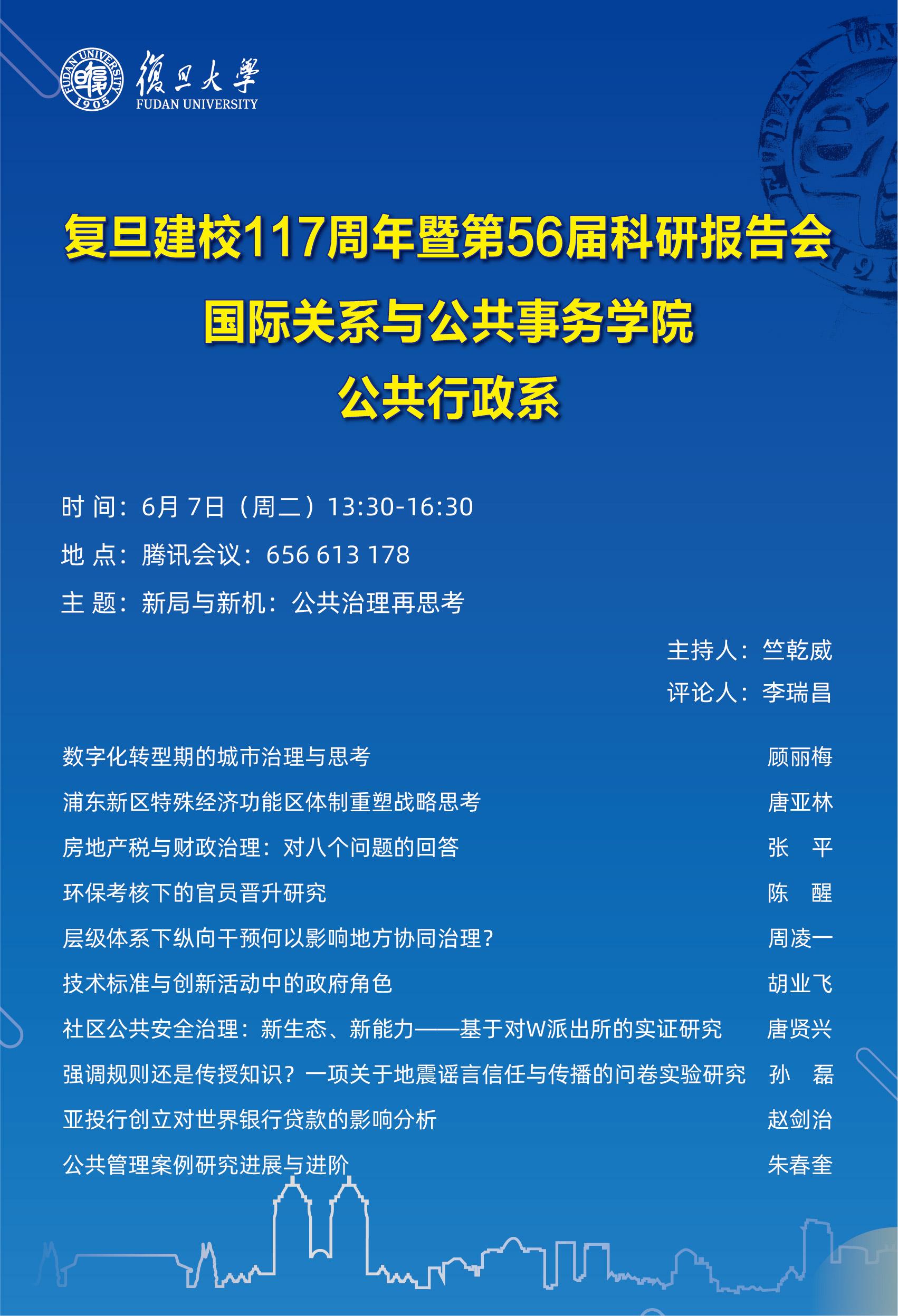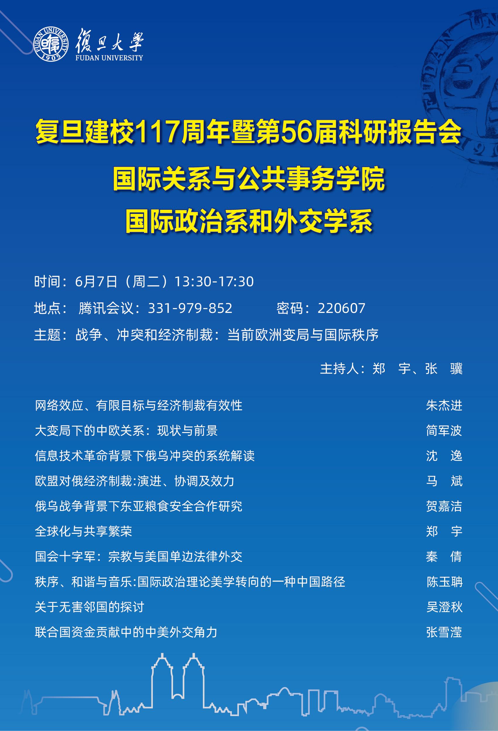 复旦建校117周年暨第56届科研报告会(6月7日)