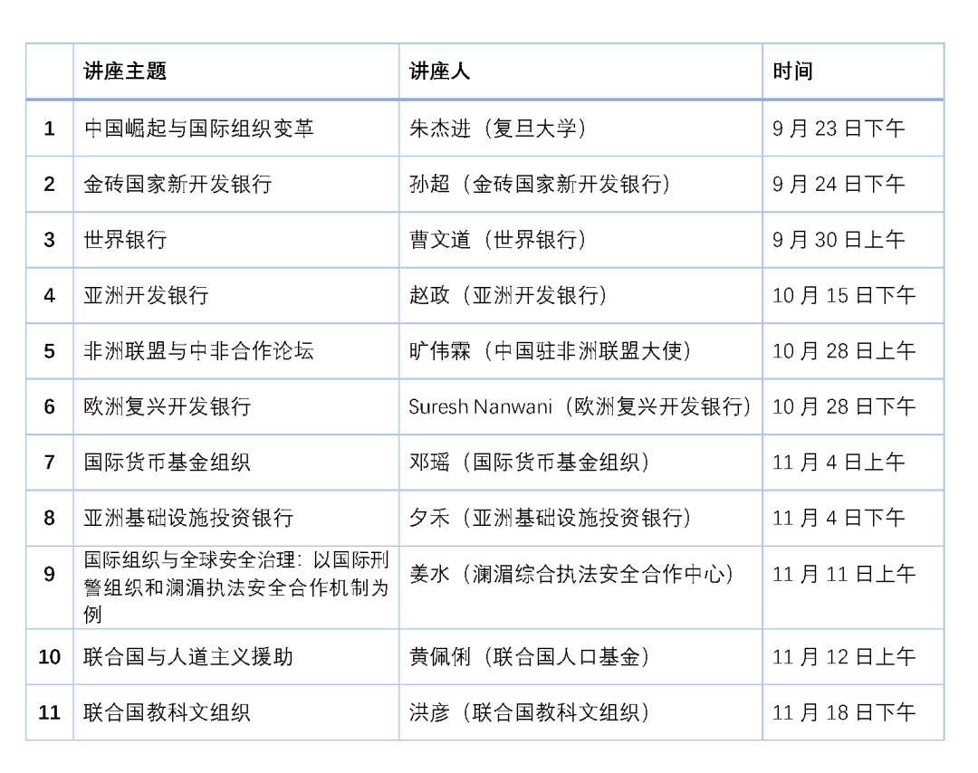 亚洲色图 《国际组织前沿讲座》线上课程由亚洲色图 举办,依托学校国际化资源,广延海内外名师集中一段时间讲授课程,面向我校研究生、本科生、兄弟高校学生以及社会公众开放。